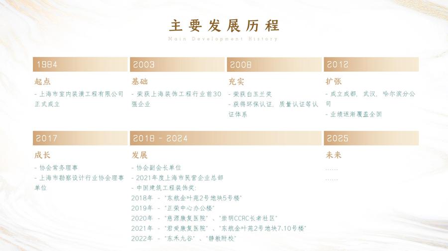 WELCOME TO SHIDECO 上海市室内装潢工程有限公司 上海市室内装潢工程有限公司于 1984 年 5 月成立,是全国首批、 上海首批从事室内装饰设计、施工及配套的专业企业。公司不仅具有建设部颁发的建筑装饰施工壹级、建筑装饰工程设计甲级、消防设施工程设计专项乙级、房屋建筑工程总承包二级、市政公用工程施工总承包二级、消防设施工程及建筑智能化工程、机电设备安装工程、钢结构工程、建筑幕墙工程的专业资质,还具有文保局颁发的“文物保护工程施工资质”及历保局颁发的“优秀历史建筑保护修缮施工资质”。 主要发展轨迹 由我公司承建的“东航金叶苑(暂名)项目2号地块4号楼、5号楼室内装饰装修工程”、“上海市国际展览有限公司正荣中心办公楼装修工程”、“崇明东滩长者社区一期 CCRC 项目室内装修专业分包工程(标段二)”、“上海慈源康复医院室内装修工程”、“上海君爱康复医院有限公司装修工程”、“东航金叶苑(暂名)2 号地块 3 标段 7、10 号楼室内装饰及空调安装工程”、“静教附校中学部修缮工程”、“崇明区东禾九谷开心农场 01 地块装饰工程”多个项目接连荣获“中国建筑工程装饰奖”。 且我公司多次荣获鲁班奖、白玉兰奖和“信得过装饰企业奖”。如“中国南极长城站”、上海市人民政府办公楼、上海科技馆主会场、上海八万人体育场、明天广场万豪大酒店、汤臣一品国际公寓楼、上海君丽大酒店、世博会韩国国家馆、博纳国际影院、兴业银行私人银行、工商银行湖北省分行原美国花旗银行汉口分行大楼、太平金融大厦、黄浦区教育学院等装饰设计施工工程。 公司在社会上享有较高的知名度和诚信度,先后荣获“全国室内装饰优秀施工企业”、“上海市信得过建筑装饰企业”、 “上海市设计优秀单位”和“上海市室内装饰金牌领军企业”称号。 合作伙伴 上海市室内装潢工程有限公司是“上海市装饰装修行业协会”、“上海市室内装饰行业协会”的会长单位。在全国先后完成了一批具有高品位、高水平、高质量的品牌工程项目。近几年公司业务进入快速发展阶段,装修设计合同数和合同额不断创出新高,千万以上装修工程不断涌现,公司综合实力不断提高,已连续多年评为上海市30强装饰企业。 |